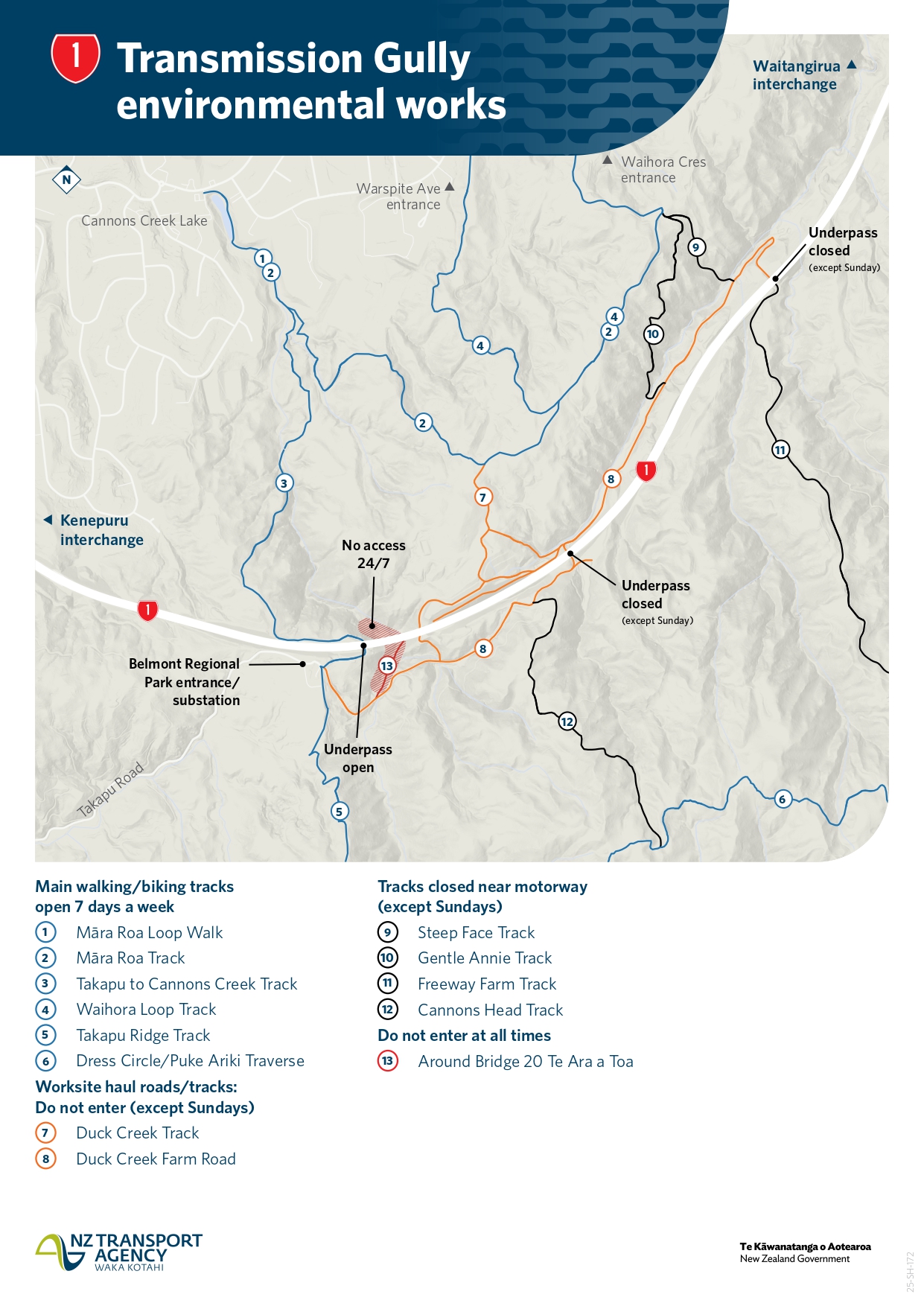 • From Porirua - The Cannons Creek entrance provides you walking access to fantastic viewing points over the Transmission Gully motorway construction